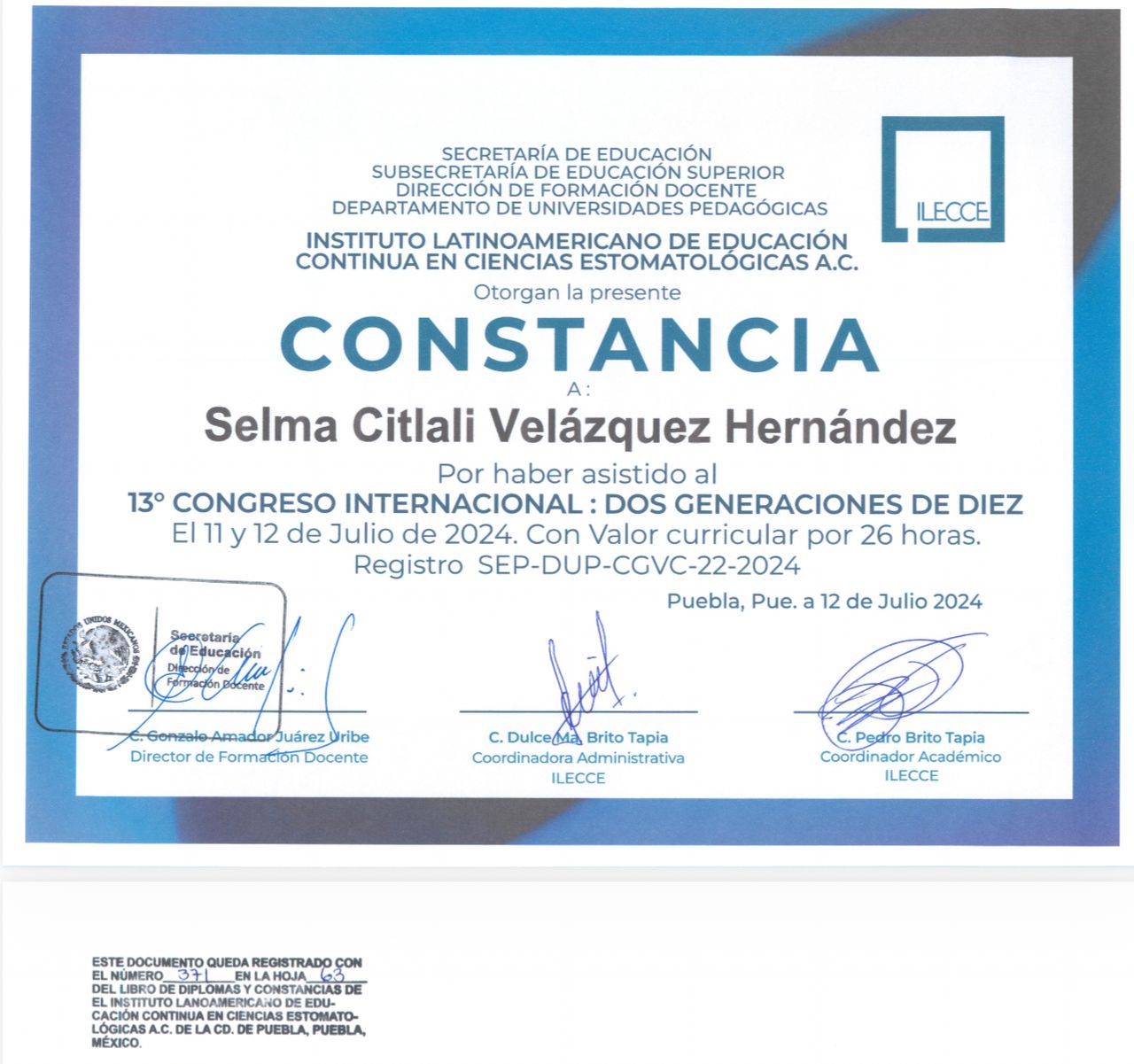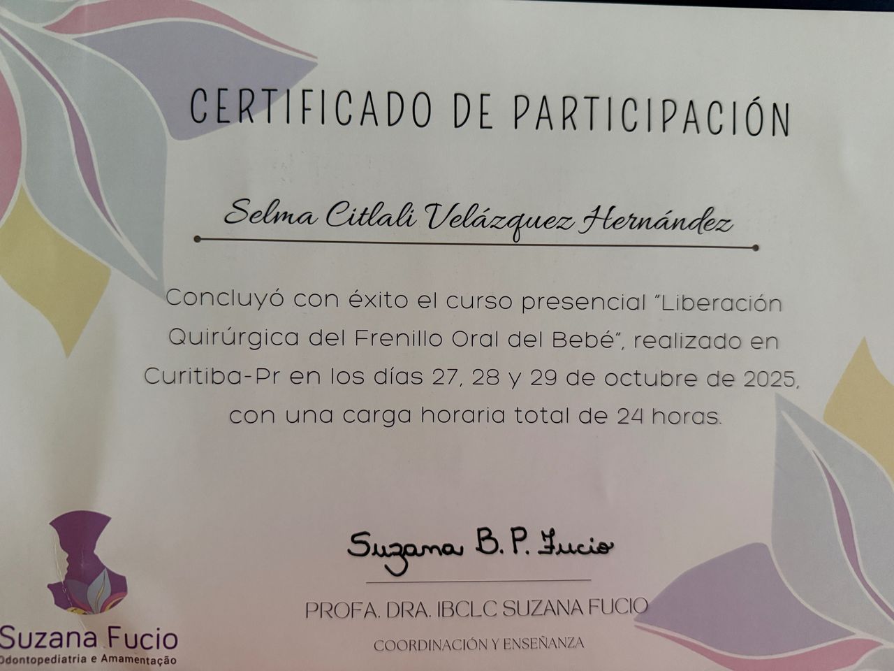 Realice la licenciatura en estomatología en la Benemérita universidad autónoma de Puebla y soy en Odontopediatra con énfasis en bebés por Facultade de Odontologia da Associação Paulista de Cirurgiões-Dentistas en São Paulo, Brasil. Tengo diversos cursos y actualizaciones en ortopedia maxilar y odontología estética que es otra de mis pasiones.